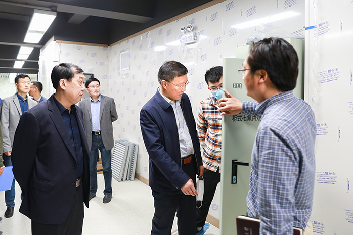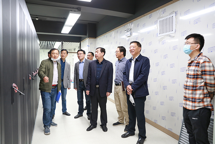 4月27日上午,校领导闵永新、刘友忠带队检查9428cn太阳集团龙山校区数据中心机房建设工作,指导银校合作建设智慧校园工作。