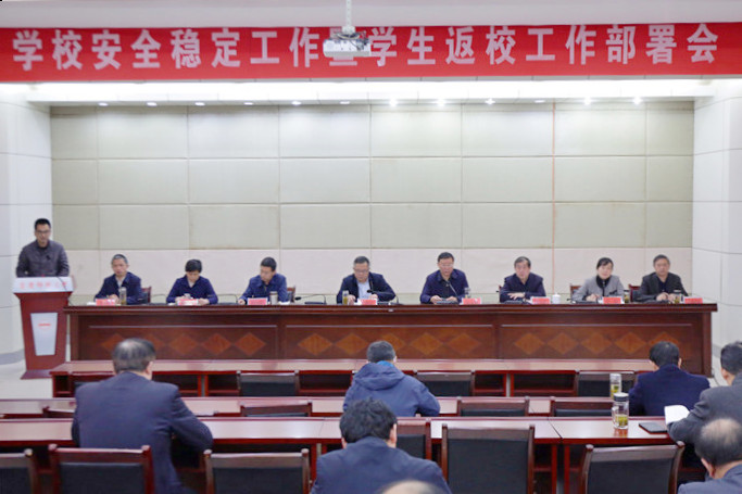 会议回顾了2019年学校安全稳定工作,分析了当前学校安全形势,布置了2020年春季校园隐患排查整治、学生错峰返校等工作。(文/杨烨 图/江伟)