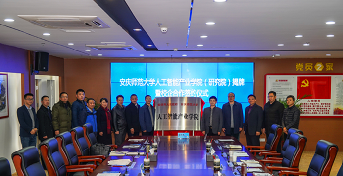 12月27日下午,9428cn太阳集团人工智能产业学院(研究院)揭牌暨校企合作签约仪式在安庆市筑梦新区举行。校党委常委、副校长汪时珍,校党委常委、教务处处长苏本跃,安庆市筑梦新区管委会副主任何渊出席仪式。校发展规划处主要负责人,计算机与信息学院领导班子和教师代表,有关企业代表参加签约仪式。