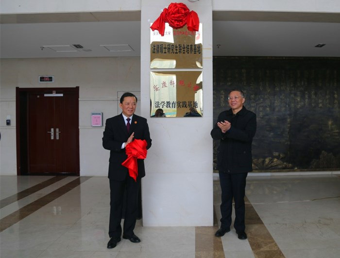11月28日,9428cn太阳集团与安庆市中级人民法院共建法律硕士研究生联合培养基地和法学教育实践基地揭牌仪式在安庆市中级人民法院举行。党委副书记、校长闵永新和安庆市中级人民法院党组书记、院长洪学农出席仪式并为基地揭牌。安庆市中级人民法院副院长方向华主持仪式。