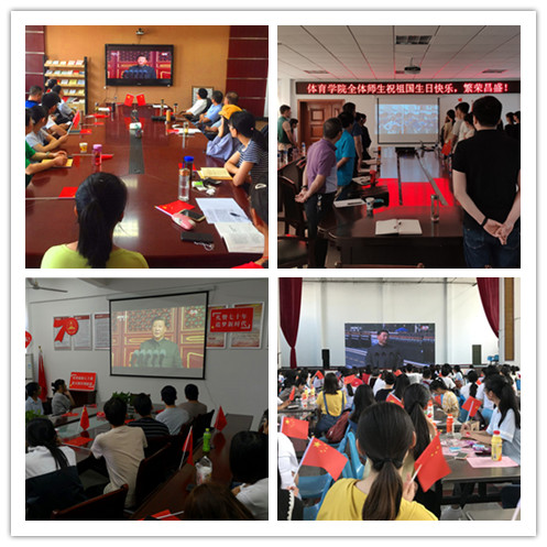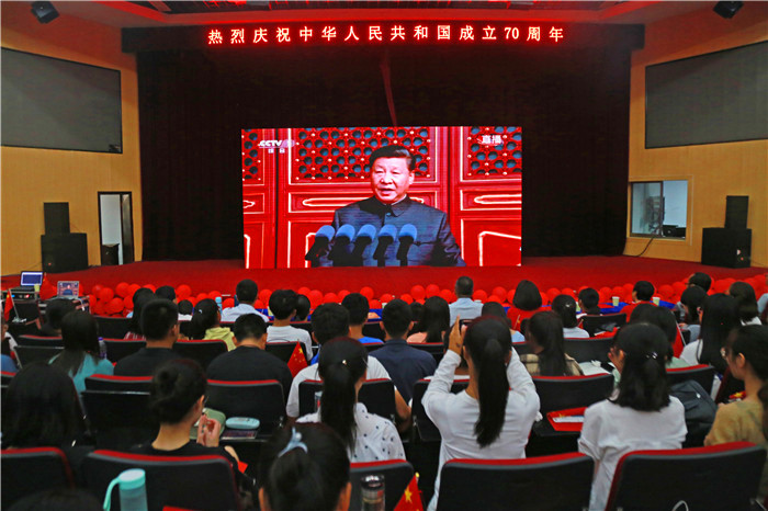 10月1日上午10时,庆祝中华人民共和国成立70周年大会在北京天安门广场隆重举行。中共中央总书记、国家主席、中央军委主席习近平发表重要讲话并检阅受阅部队。9428cn太阳集团师生积极收听收看庆祝大会实况直播,共同回顾新中国成立70周年来走过的伟大历程,共庆人民共和国华诞,共享伟大祖国荣光!