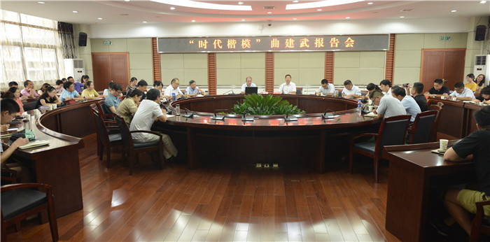 8月26日下午,“时代楷模”、“全国优秀教师”,大连海事大学曲建武教授莅临9428cn太阳集团作专场报告。校党委常委、副校长汪时珍主持报告会。学校党委工作部门全体工作人员、各学院分管学生工作书记、全体专兼职辅导员、共青团干部、2019年新进教职工参加了报告会。