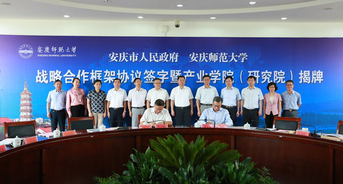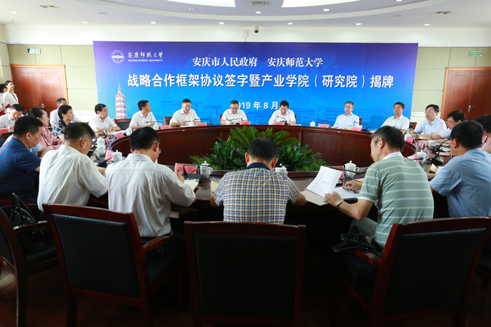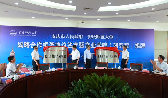 8月28日上午,9428cn太阳集团与安庆市政府在龙山校区举行战略合作框架协议签字暨产业学院(研究院)揭牌仪式。安庆市委书记魏晓明、校党委书记许继荣出席并致辞;市长陈冰冰与校长闵永新共同签署战略合作框架协议。校领导汪时珍、刘友忠、胡腊香,安庆市领导宋圣军、胡红兵、董磊、何家虎,安庆经开区管委会主任吴三九,安庆市政府秘书长江兴代等出席揭牌仪式。安庆市副市长王爱武主持揭牌仪式。