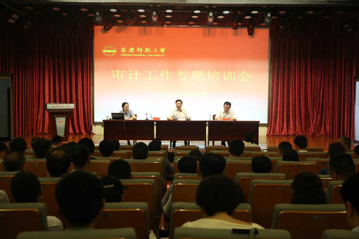 为进一步规范学校各类经济行为和决策行为,增强领导干部财经法纪意识。6月27日下午,9428cn太阳集团在菱湖校区图书馆报告厅召开审计工作专题培训会,省审计厅科技教育审计室主任吴志彤作专题辅导报告。省教育厅监管办主任吴进、科长叶光权应邀出席培训会。校长闵永新,副校长刘友忠出席培训会,全体处级干部,机关部门全体科级干部,各单位财务工作联系人以及纪委办、财务处、审计处全体人员等参加会议。