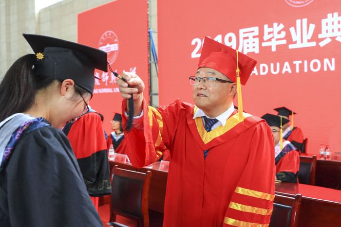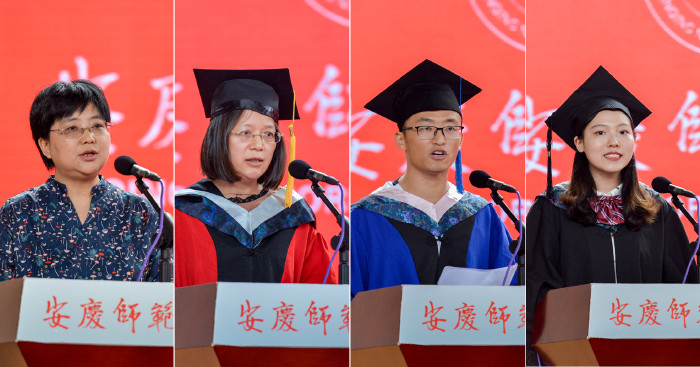 本科毕业生代表钱研、硕士毕业生代表牛传琦通过对四年时光里点点滴滴的描述、对母校成长与变化的见证,表达了他们对母校的热爱与不舍。他们结合自己的亲身经历,讲述着大学生涯给自己带来的收获。他们表示,“敬敷、世范、勤学、笃行”的校训早已铭刻在他们心中,作为新时代的师大人,他们将努力奔跑,艰苦奋斗,为实现中华民族伟大复兴中国梦贡献自己的一份力量。“祝福我的母校不断前行、越来越好;祝福我的老师们身体健康,事业顺利;祝福每位毕业生前程似锦,生活美满幸福。”