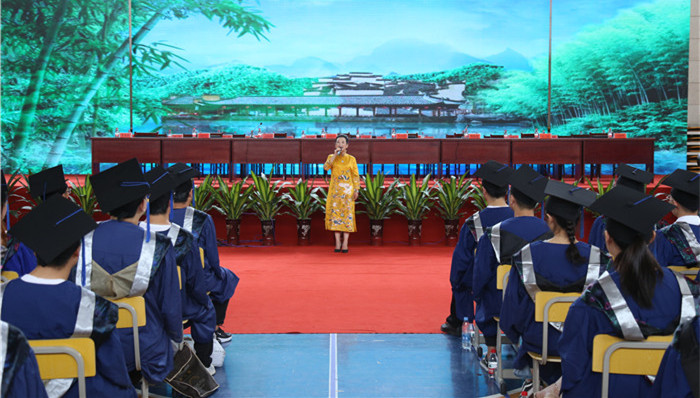 1986届毕业生陈文贞用真诚的话语,向在座的毕业生讲述了属于她的毕业故事。陈文贞与她的同学们一直努力遵循“敬敷世范、勤学笃行”的校训,在青春年华时奋力拼搏,如今仍然在不同领域里发光发热。她表示,“努力”是安庆师大学子传承的独特气度和精神,是烙在每位安庆师大学子身上无法磨灭的共同印记。“人生只有一次,唯有努力奋斗,才会让我们在有限的时间里发挥无限的价值。”陈文贞对毕业生表达了由衷的祝福,希望他们奋发有为、高奏凯歌、超越梦想,创造属于每个生命个体的独一无二。