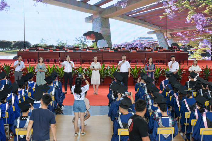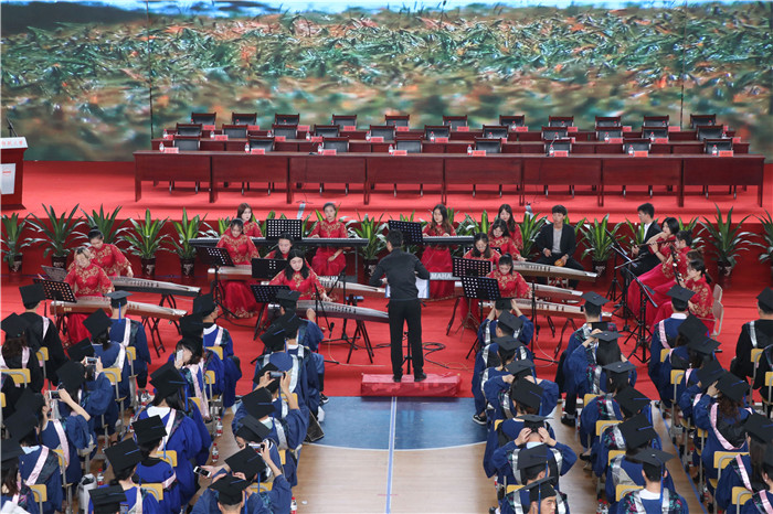 毕业典礼开始前,师生代表进行了简短的文艺表演,表达母校师生对即将离校的毕业生的殷切希望和深深祝福。