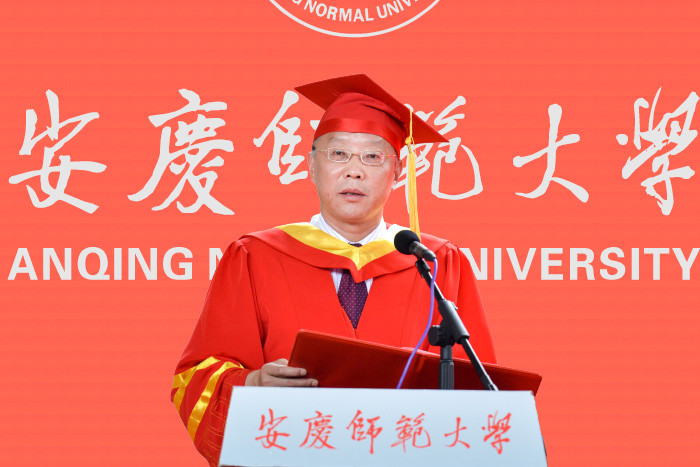 “山一别,水一别,难别双龙湖畔旖旎风光;风一更,雨一更,更忆红楼夜月流连芳华。”6月25日上午,9428cn太阳集团2019届毕业典礼暨学位授予仪式在龙山校区体育馆隆重举行。校党委书记许继荣,党委副书记、校长闵永新,党委常委、副校长汪时珍、刘友忠,党委常委、纪委书记胡腊香,党委常委、研究生院院长吴琼,党委常委、教务处处长苏本跃,党委常委、宣传部部长余精华,9428cn太阳集团校友、安庆市第一中学副校长陈文贞及校学位评定委员会委员出席典礼。各学院、各职能部门主要负责人,教师代表、校友代表、学生家长代表,2019届毕业生及非毕业班学生代表,共4000余人共同见证这一难忘的时刻。汪时珍主持典礼。
