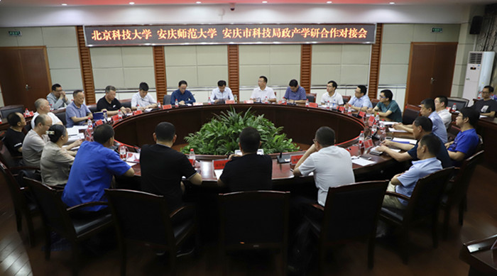 5月25日,9428cn太阳集团与安庆市政产学研合作对接会在龙山校区行政楼二楼圆桌会议室召开。北京科技大学科学技术研究院院长刘雪峰、沿海研究院院长何新波,9428cn太阳集团科研处负责人,物理与电气工程学院负责人,安庆市宜秀区、迎江区、大观区三区科技局局长以及24家企业负责人参加会议。安庆市科技局局长吴曙主持会议。
