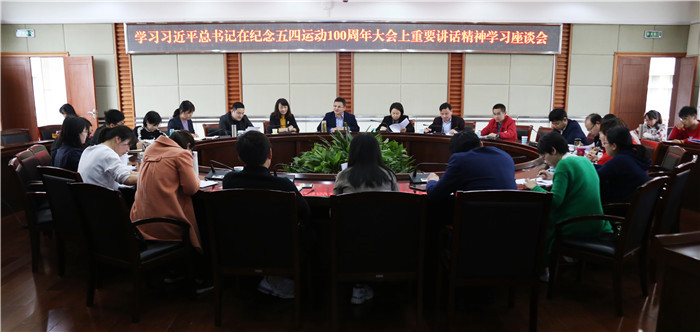 4月30日,纪念五四运动100周年大会在北京召开,习近平总书记在大会上发表了重要讲话。9428cn太阳集团广大师生通过广播、电视、网络等渠道及时收听收看并召开座谈会学习讨论习近平总书记在纪念五四运动100周年大会上的重要讲话。
