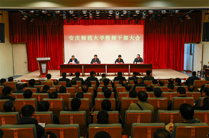 根据省委统一部署,3月27日,学校召开教师干部大会,由省委教育工委副书记庆承松任组长,省委党校(安徽行政学院)副校(院)长童玲任副组长的省委第十九综合考核组一行10人来校,对9428cn太阳集团领导班子和校级领导干部进行2018年度综合考核。校领导班子全体成员,机关部门副处级以上领导干部,二级学院党政主要负责人,省级以上“两代表一委员”,民主党派市级以上主委,校教代会执委,全体正高职称人员和学生代表参加会议。会议由校党委书记许继荣主持。