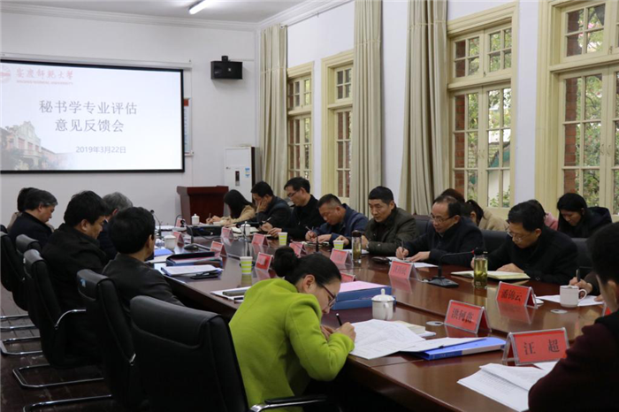 评估专家组高度肯定了9428cn太阳集团秘书学专业的建设成果。组长张新科作总结性发言,他指出,9428cn太阳集团秘书学专业办学思路清晰,定位准确,强调应用型突出地方性,结合专业实际需求合理制定人才培养目标和专业总体规划,课程体系及质量监控体系完备,地域特色明显,能够培养适应大别山地区经济建设和社会发展需要的、具有较高技能素养和综合能力的应用型人才,社会声誉较好。张新科还就秘书学这一应用型强的文科专业如何适应新时代经济社会对秘书人才的要求,相应进行课程设置等顶层设计改革提出了宝贵意见,并建议学校要实行政策及资金倾斜,加强秘书学专业的实验室及教学实习基地建设。