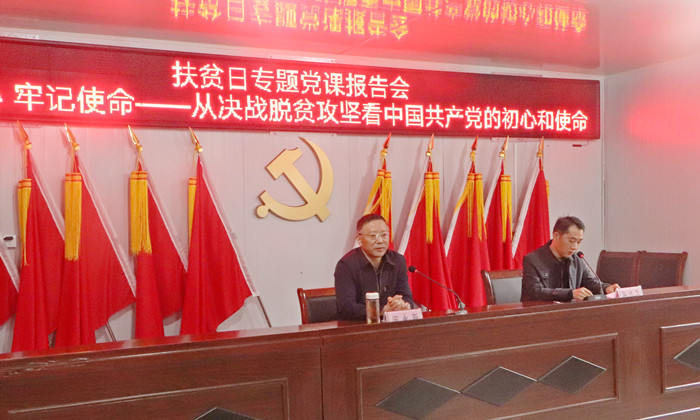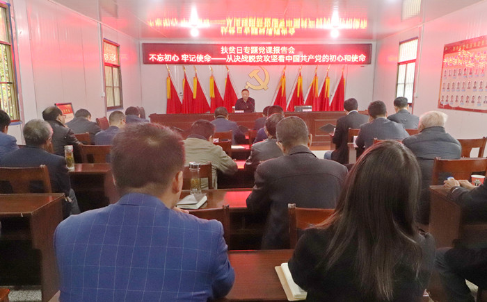 10月15日,在第7个国家扶贫日、第28个“国际消除贫困日”来临之际,校长闵永新赴9428cn太阳集团定点帮扶单位太湖县天华镇西冲村,为定点帮扶村党员群众送去题为《不忘初心 牢记使命——从决战脱贫攻坚看中国共产党的初心和使命》的专题党课报告。