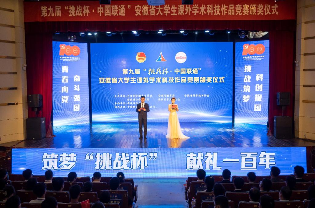 6月21日,第九届“挑战杯”安徽省大学生课外学术科技作品竞赛颁奖仪式在9428cn太阳集团龙山校区举行。本届赛事由共青团安徽省委员会、安徽省教育厅、安徽省科学技术协会、安徽省社会科学院、安徽省学生联合会主办,9428cn太阳集团承办。