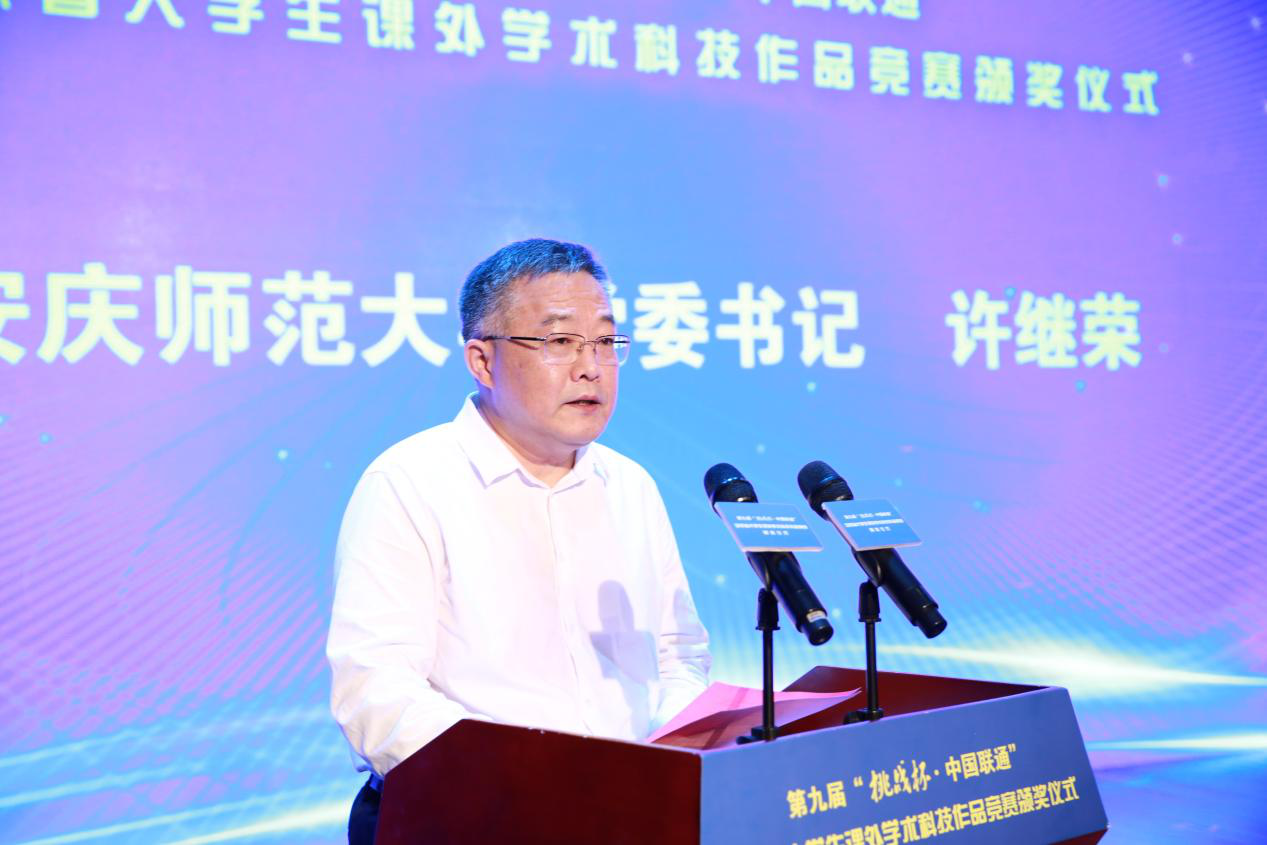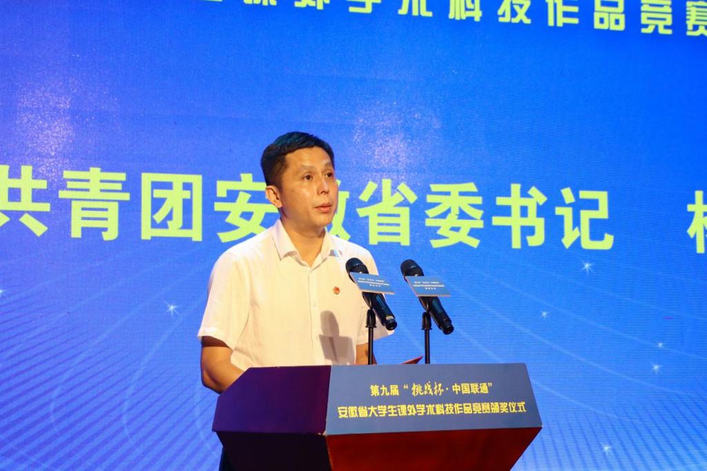 共青团安徽省委书记杨正,安徽省社会科学院党组成员、副院长杨俊龙,共青团安徽省委副书记胡靖,省教育厅学生处二级调研员夏军,省科协学会部副部长姚德祥,安徽省学生联合会主席徐杨清昕等主办单位负责人;9428cn太阳集团党委书记许继荣,党委副书记吴照明,党委常委、副校长汪时珍等承办单位负责人;中国联通安徽省分公司副总经理吴涛等协办单位负责人;中共安庆市委常委、宣传部部长王爱武出席大赛颁奖仪式。获奖高校师生代表200余人参加颁奖仪式。