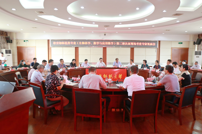 9月27日,9428cn太阳集团举行教育部师范类专业第二级认证(生物科学、数学与应用数学)现场考查专家组见面会。生物科学专业认证教育部专家组组长华中师范大学原副校长李向农教授,数学与应用数学专业认证教育部专家组组长浙江工商大学施建祥教授,生物科学专业认证专家组成员冯鸿教授、孙洪兆教授、周忠良教授、张世军正高级教师,数学与应用数学专业认证专家组成员张守波教授、李淑文教授、张筱玮教授、王斌高级教师,省教育评估中心主任汪开寿,9428cn太阳集团党政领导许继荣、闵永新、汪时珍、胡腊香、吴琼、余精华出席会议。9428cn太阳集团相关职能部门、学院及认证专业负责人参加会议。会议由李向农主持。