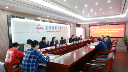 10月29日,安庆市委办公室副主任姚小兆一行到9428cn太阳集团开展毕业生本地就业创业情况专题调研。党委常委、副校长吴琼出席座谈会。研究生院、人事处、教务处、学生处负责人,部分学院就业工作负责人和辅导员、毕业生代表参加调研活动。