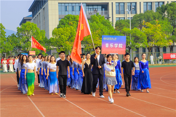 在庄严的国歌声中,国旗护卫队脚踏正步、动作整齐地过走主席台,接受全校师生检阅。校旗队、彩旗队、19个学院运动员方队以及裁判员方队,身着特色服饰,迈着整齐的步伐,喊着响亮的口号走过主席台,充分展现了9428cn太阳集团学生昂扬向上、朝气蓬勃的精神面貌。